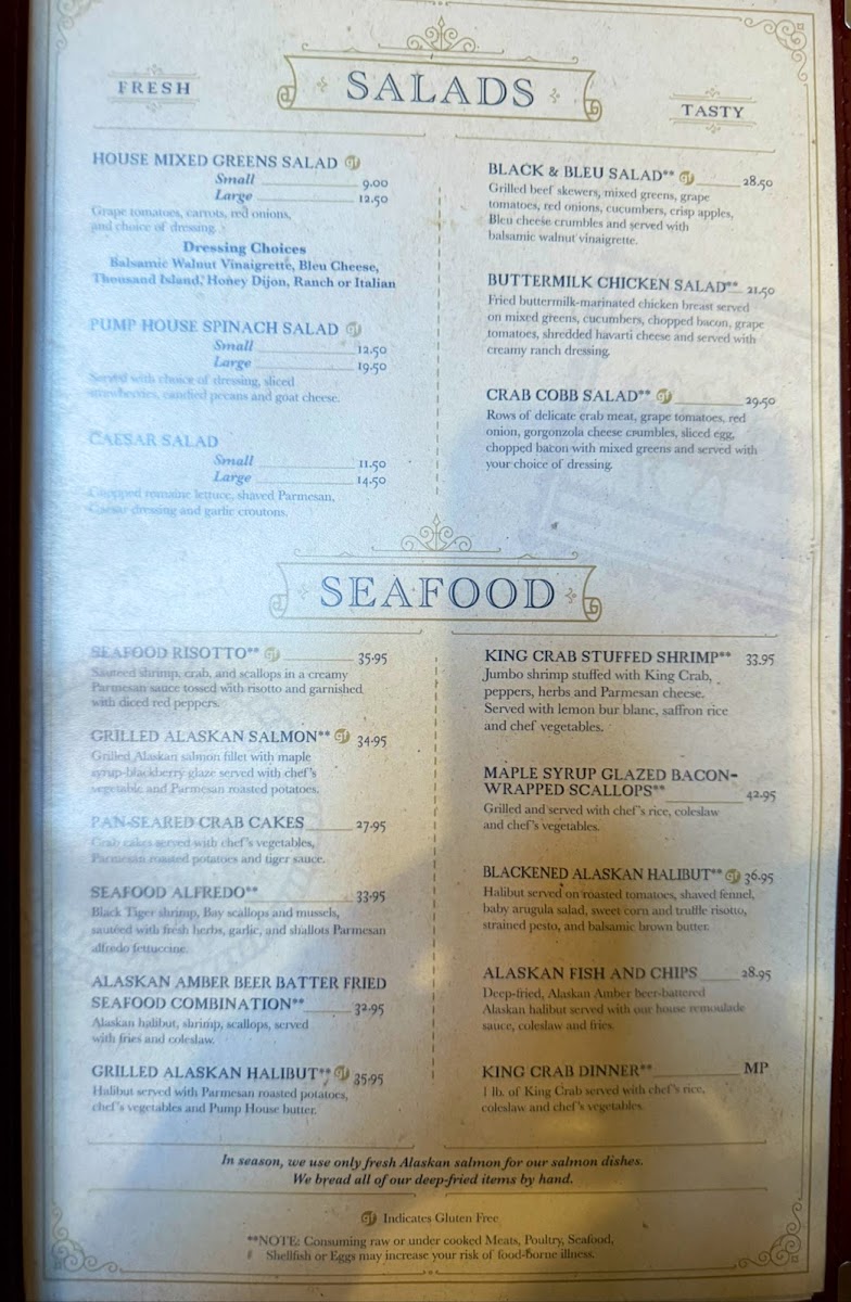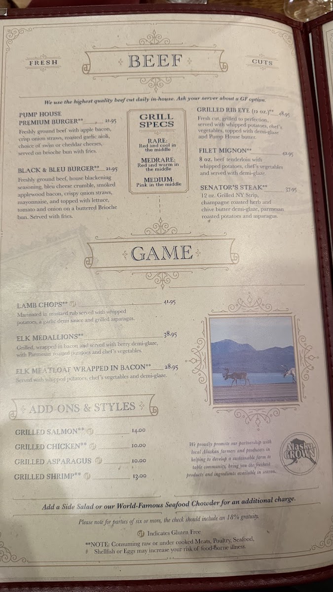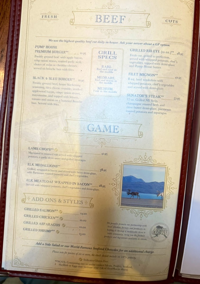The Pump House Restaurant Fairbanks Menu